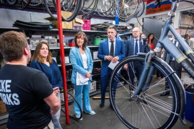 Het gebeurt niet vaak dat een minister en een burgemeester elkaar ontmoeten in een fietsdepot. Maar juist dat symboliseert de…