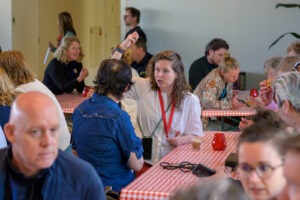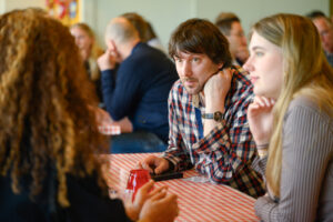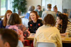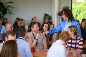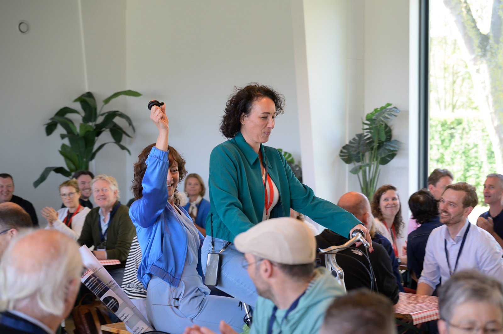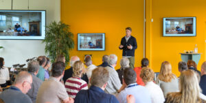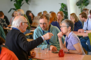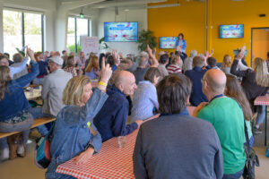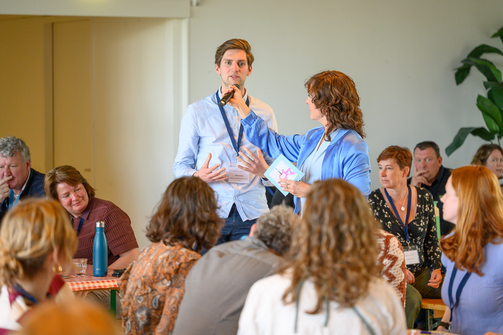 Vervolgens neemt Sander Schimmelpenninck de deelnemers mee in hoe vermogensongelijkheid en kansenongelijkheid in Nederland is ontstaan en wat dit in de dagelijkse praktijk betekent. Met inspirerende oplossingsrichtingen bood hij ook perspectief. Tweemaal tijdens de keynote werd er geschakeld naar de zaal. In groepjes bespraken de deelnemers de tafelvragen: