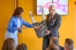 Als gastheer ontvangt Van Schie een fietstas. In deze fietstas zijn alle tools te vinden die binnen de City Deal zijn ontwikkeld en kunnen worden gebruikt voor verschillende projecten. Hierbij kan gedacht worden aan een checklist voor fietsreparatie, een gids voor het starten met fietsdocenten en een canvas om het fietsecosysteem in kaart te brengen.